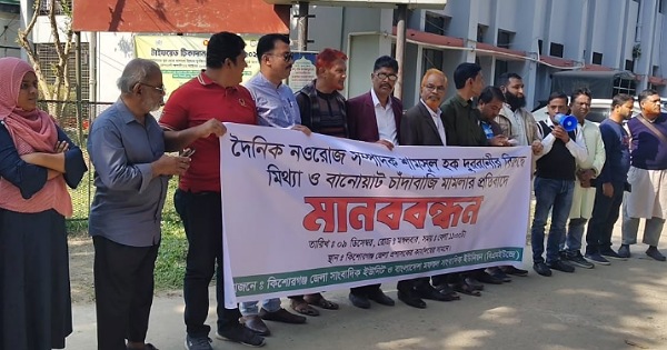 দৈনিক নওরোজ পত্রিকার সম্পাদকের বিরুদ্ধে মিথ্যা চাদাবাজি মামলা ও কারাগারে প্রেরণের প্রতিবাদে মানববন্ধন করা হয়েছে।